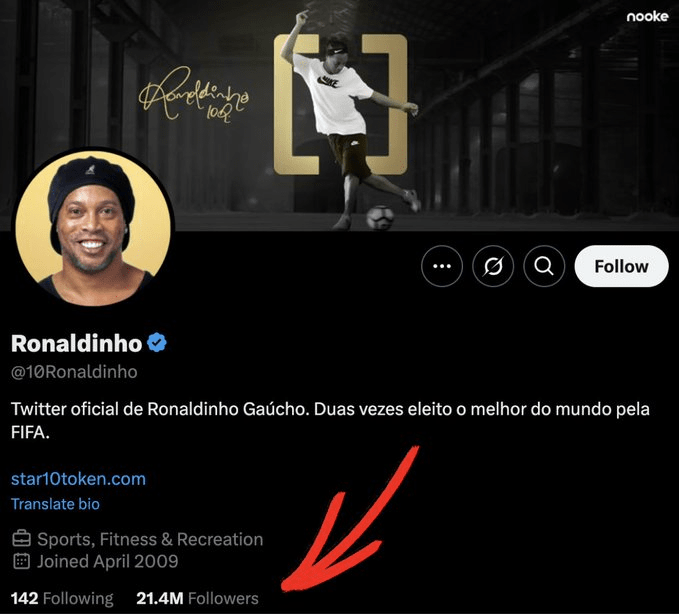 Kromě získané popularity má Ronaldinho přes 21 milionů sledujících na svém účtu X