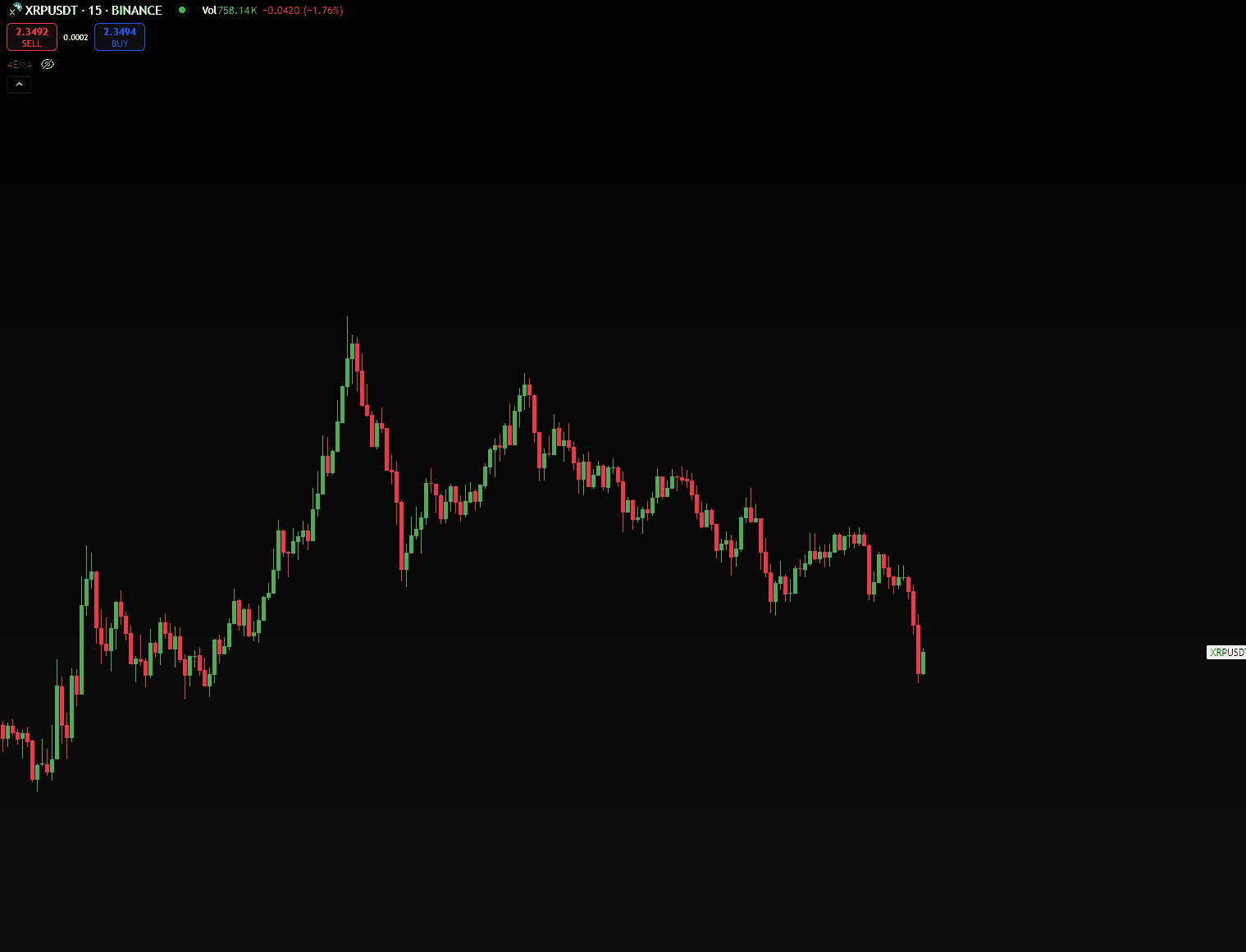 Když se podíváme na 15-minutový graf pro $XRP / USDT, vidíme zajímavé vývoje. Aktuálně se XRP obchoduje na 2.340, dolů 2.05% za posledních 24 hodin. Pojďme se podívat na graf, abychom odhalili, co by mohlo přijít dál. 👇