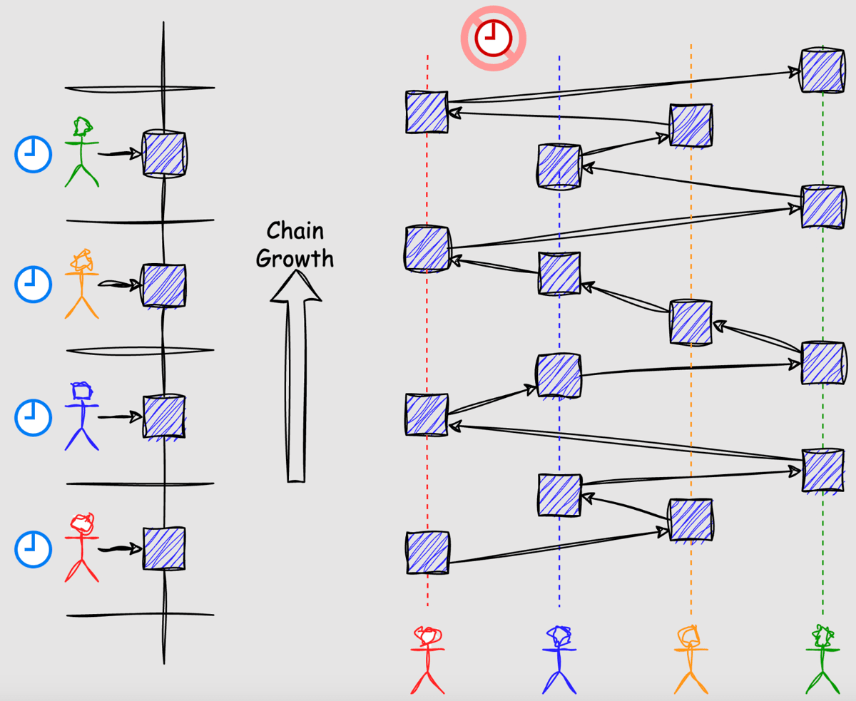 (1)Nejprve, její čas na vytvoření bloků není pevně stanoven, Pharos umožňuje všem konsensuálním uzlům předkládat návrhy současně, nikoli prostřednictvím tradičního lineárního rámce.