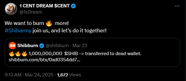 Účet @1cDream X reagoval na tweet Shibburn o spálení 1 miliardy, mobilizuje armádu SHIB: