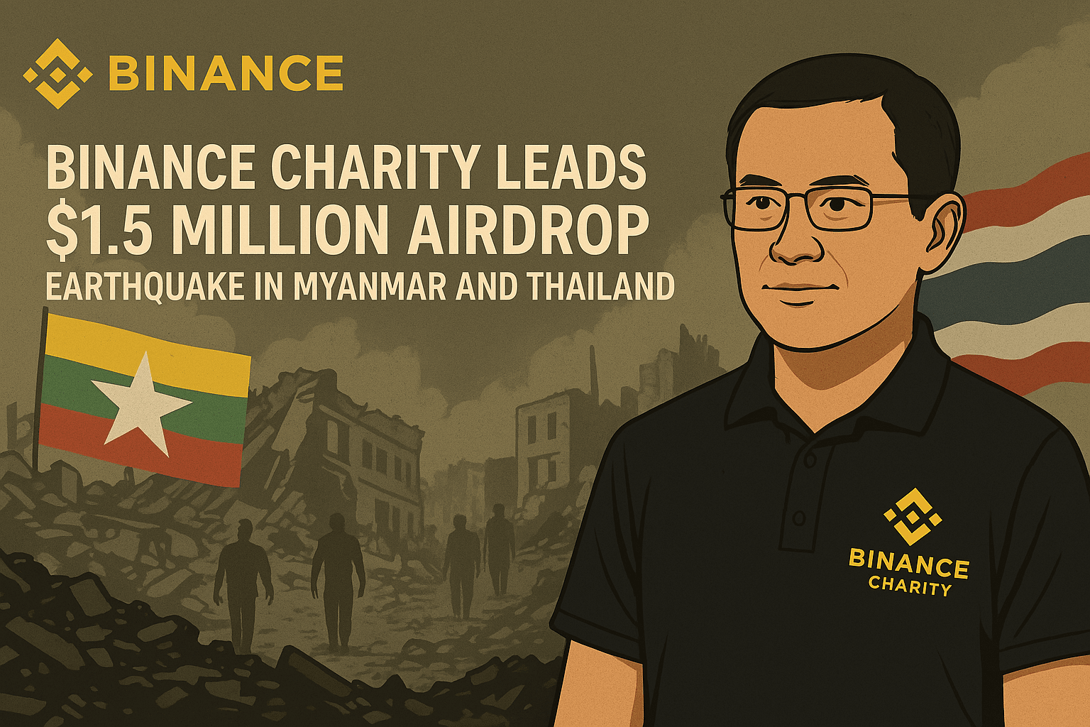 V reakci na devastující zemětřesení v Myanmaru a Thajsku zahajují Binance Charity a CZ (Changpeng Zhao) airdrop BNB v hodnotě 1,5 milionu dolarů pro postižené uživatele.
