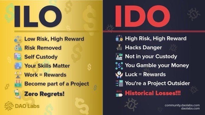ILO je na druhé straně celé o úsilí a talentu. Místo investování peněz investuješ své dovednosti—bez ohledu na to, jestli píšeš, navrhuješ nebo marketinguješ. Je to v podstatě crowdfunding poháněný kreativitou a vášní. Tento přístup zajišťuje, že tokeny jsou udělovány těm, kteří skutečně rozumí a přispívají k projektu, místo jen těm, kteří si mohou dovolit koupit.