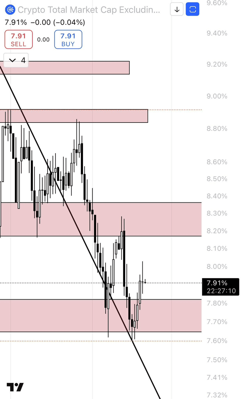 Osobně nevěřím, že toto je konec býčího trendu a že bude sezóna Altů, jakmile BTC.D prolomí svůj rostoucí trend.
