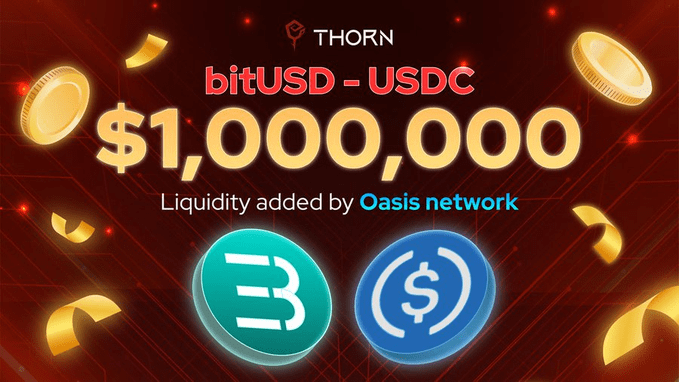 9. dubna, @thorn_protocol oznámil, že získal trvalou podporu od @OasisProtocol, přičemž 1 milion dolarů je přiděleno na likviditu $bitUSD / $USDC. Tento milník zdůrazňuje růst Thorn stablecoinu a poskytuje stabilitu, transparentnost a nízkou skluznost obchodního zážitku pro všechny uživatele!💸