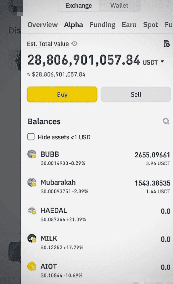 Moje Binance peněženka: 28 806 901 057,84 USDT