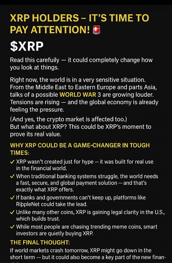 ✅ Když tradiční bankovní systémy zápasí, svět potřebuje rychlé, bezpečné a globální platební řešení — a to je přesně to, co $XRP nabízí.