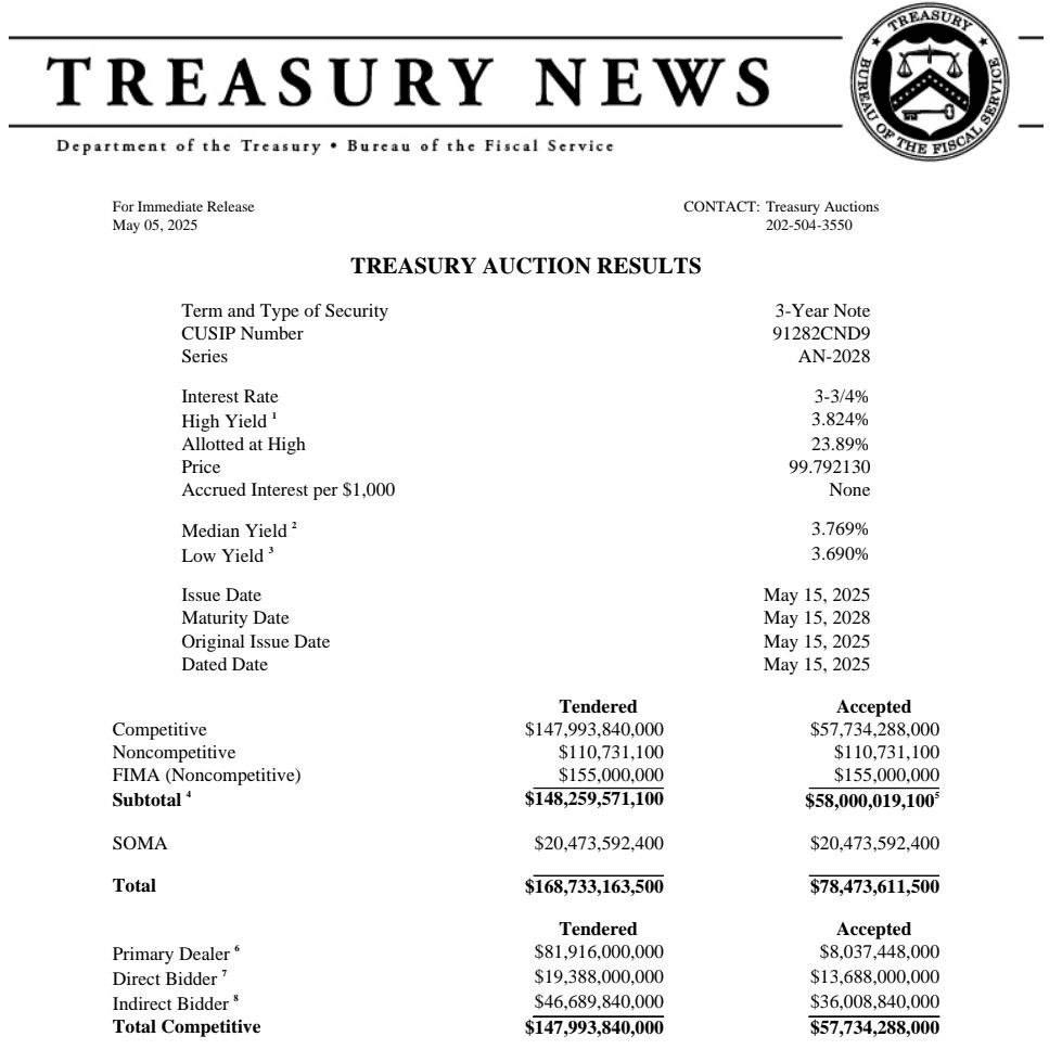 ZPRÁVA: Fed právě zakoupil $BTC 20,47 miliardy dolarů v tříletých státních dluhopisech během aukce 5. května. Okamžitě se všichni začali ptát: „Je to návrat QE? Zase tisknou peníze?