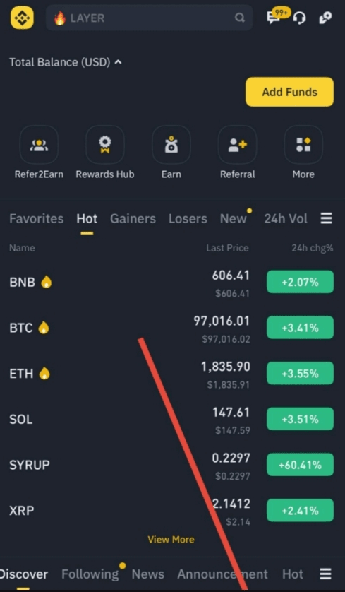 1. Přihlaste se do svého účtu Binance pomocí aplikace nebo webu.