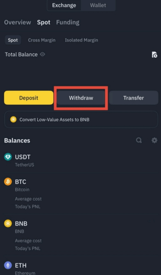 2. Jak vybrat peníze z Binance