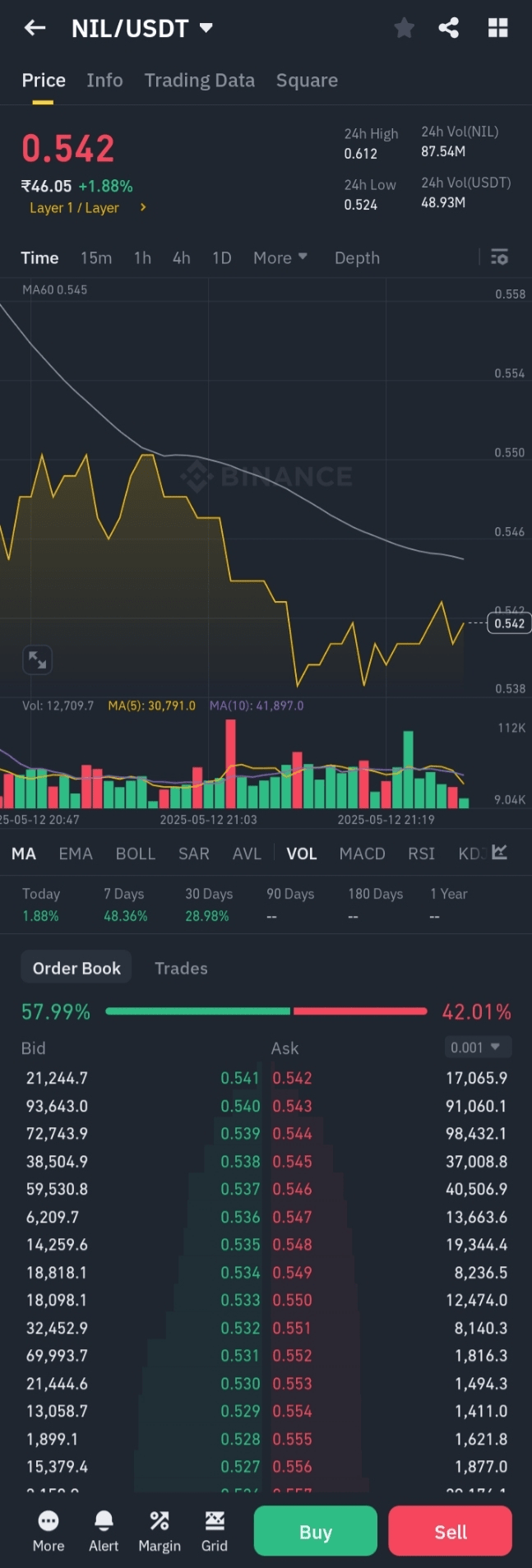 ($NIL ) 0,5335 $, s 24hodinovým obchodním objemem kolem 128 milionů $. Intradenní cena tokenu se pohybovala mezi 0,5260 $ a 0,6056 $.