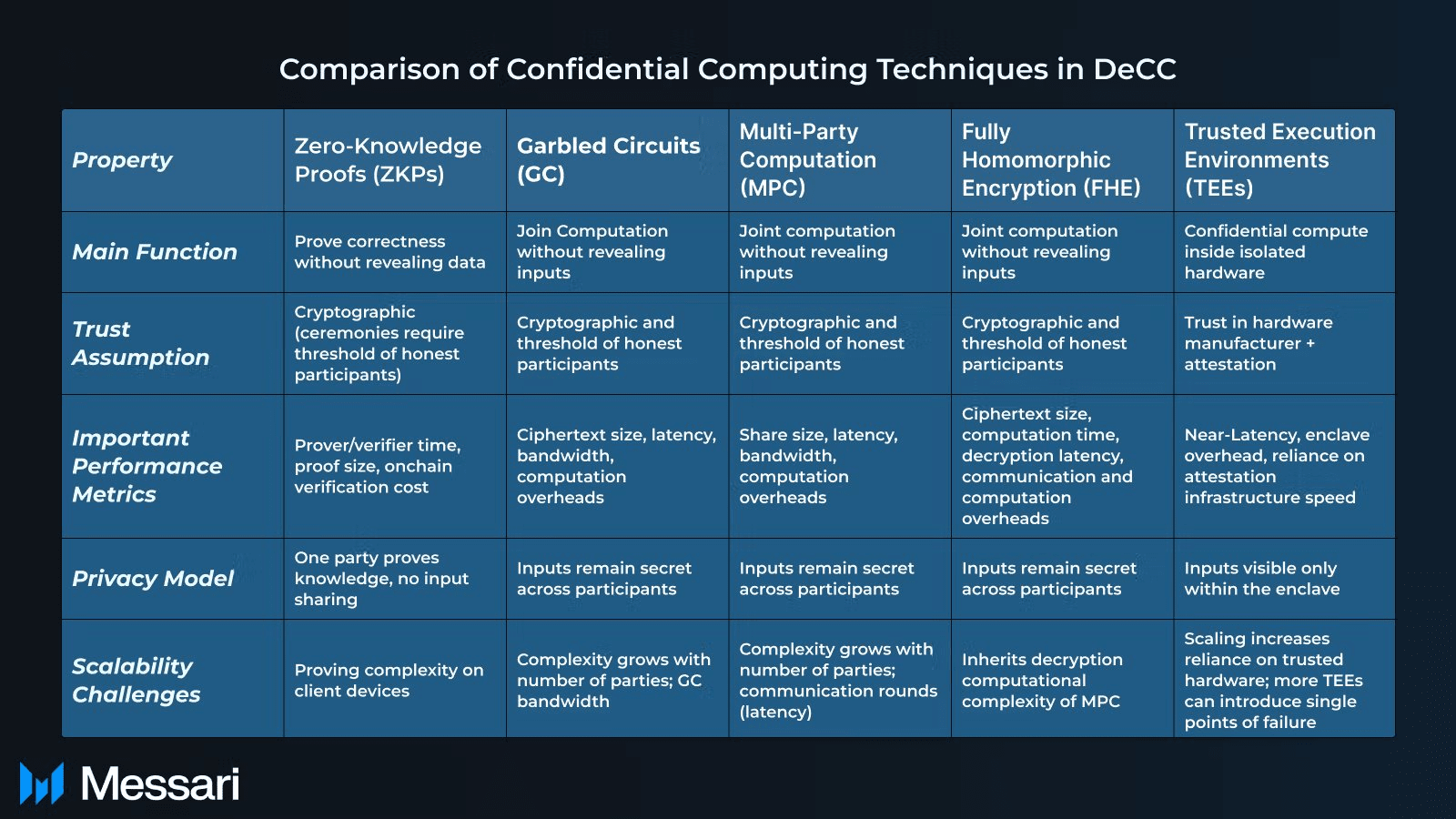 Více než 1 miliarda USD bylo investováno do projektů DECC, Decentralizované tajné výpočty (#DeCC ) představují zásadní změnu v tom, jak se citlivá data zpracovávají v decentralizovaných systémech. Infrastruktura blockchainu se dříve soustředila na transparentnost, na úkor soukromí a omezovala potenciální aplikace (Studie od @MessariCrypto)