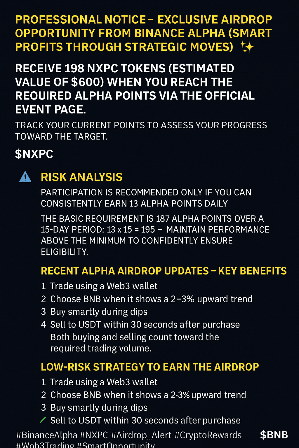 #BinanceAlphaAlert #NXPC #AirdropAlert #Web3Trading #SmartLiving