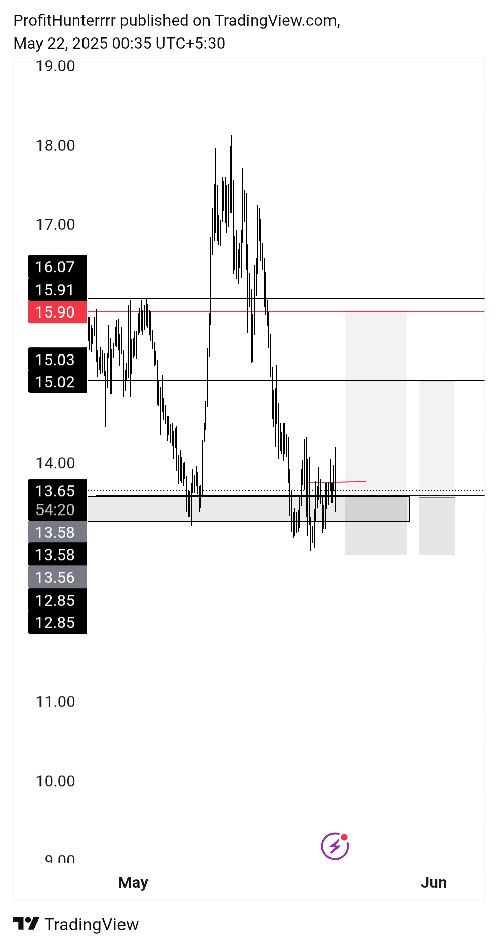 Vstupní zóna: 13,50 $ – 13,65 $ (Podpůrný box)