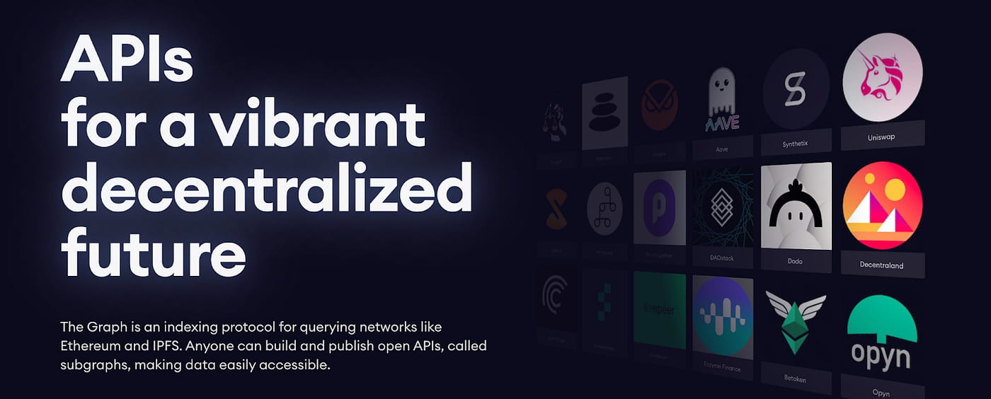 Graf je indexovací a dotazovací vrstva decentralizovaného webu (Web3). Vývojáři vytvářejí a publikují otevřená rozhraní API, nazývaná podgrafy, která mohou aplikace dotazovat pomocí GraphQL. The Graph v současné době podporuje indexování dat z 22 různých sítí včetně Etherea, Arbitrium, Avalanche, Celo, Fantom, Moonbeam, IPFS a PoA s dalšími sítěmi, které budou brzy k dispozici. K dnešnímu dni bylo na hostované službě nasazeno více než 31 000 podgrafů a nyní lze podgrafy nasadit přímo v síti! Více než 24 000 vývojářů vytvořilo podgrafy pro aplikace, jako jsou Uniswap, Synthetix, Foundation, Zora, KnownOrigin, Gnosis, Balancer, Livepeer, DAOstack, Audius, Decentraland a mnoho dalších.