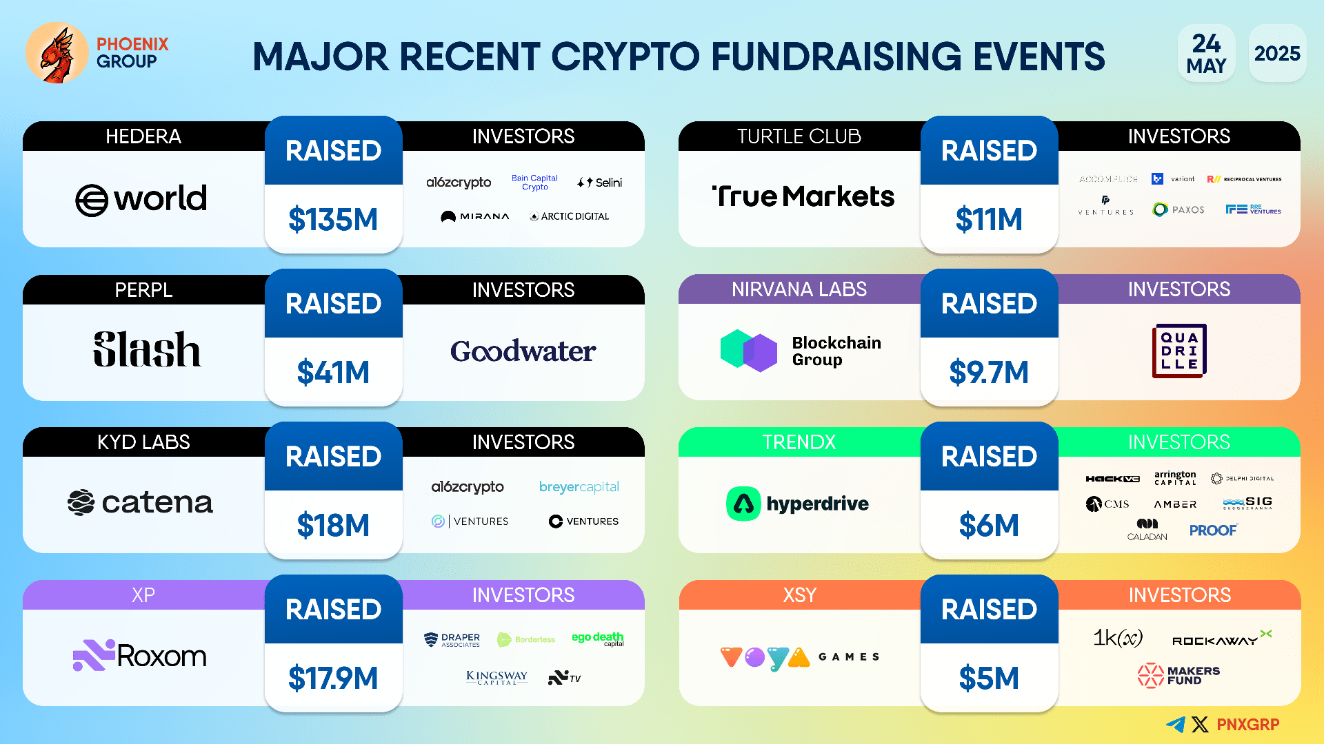 * XSY (5 milionů dolarů získáno): XSY uzavřelo kolo financování ve výši 5 milionů dolarů s podporou 1k(x), Rockaway X a Makers Fund. Tato investice naznačuje zaměření na herní nebo metaversové projekty, což je oblast, o kterou roste zájem v kryptosvětě.