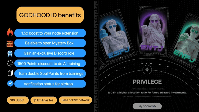 Druhý způsob: Uživatel musí investovat malé množství peněz, razit GodHood ID a získat 1.5x násobek bodů. (10 USDC na Base nebo Bsc).