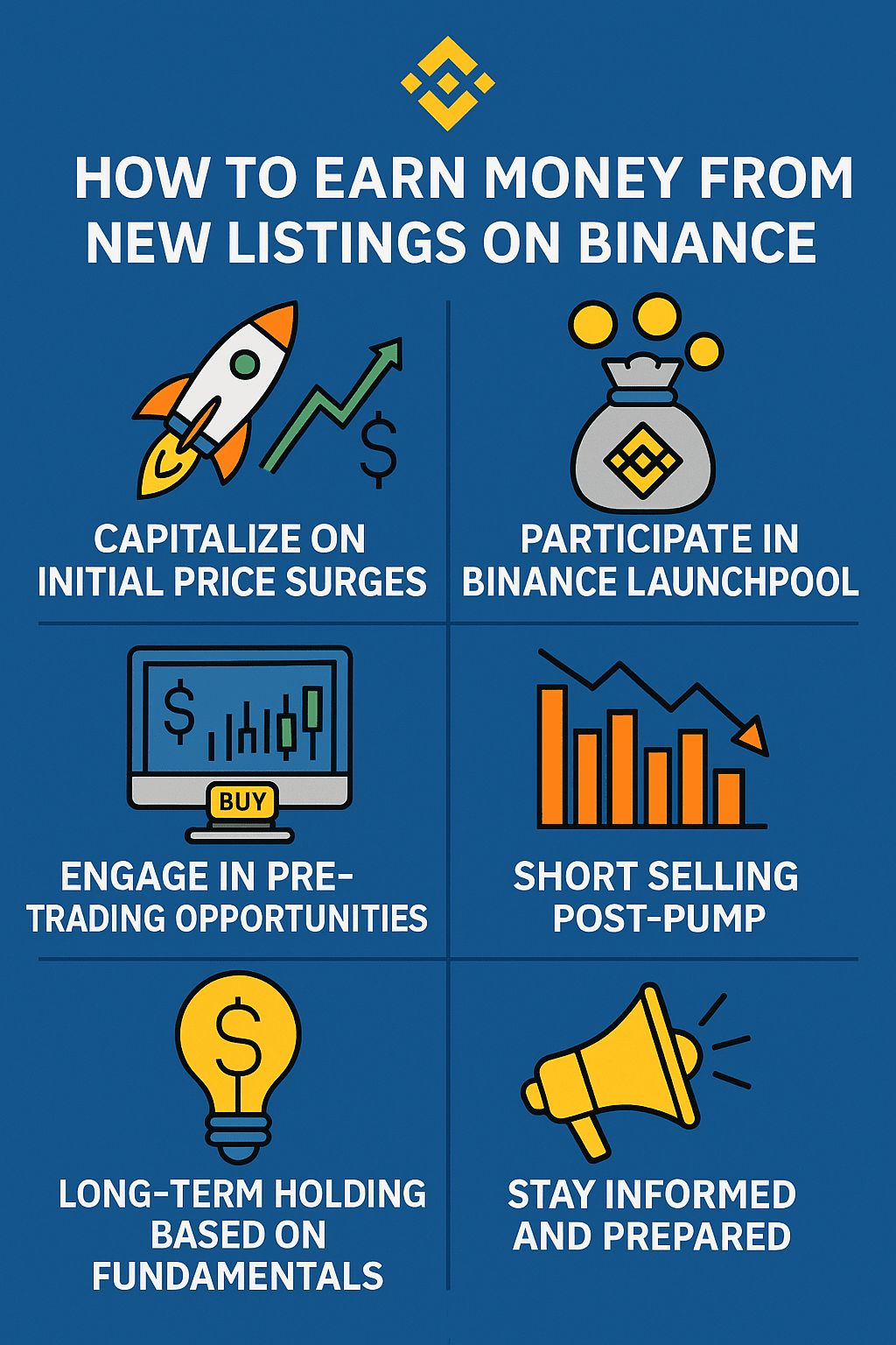 NovÊ vÃŊpisy mincà na Binance Äasto vytvÃĄÅejà vzruÅĄujÃcà pÅÃleÅžitosti pro zkuÅĄenÊ i novÊ obchodnÃky. S odpovÃdajÃcà strategiÃ, ÅÃzenÃm rizik a povÄdomÃm můŞete potenciÃĄlnÄ profitovat z tÄchto udÃĄlostà s vysokou volatilitou. NÃÅže jsou uvedeny nejÃēÄinnÄjÅĄÃ způsoby, jak vydÄlat penÃze, kdyÅž je novÃĄ kryptomÄna uvedena na Binance: