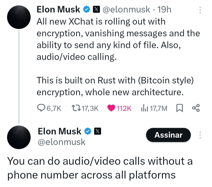 📣🆕 Nový XChat je poháněn Rustem, šifrováním ve stylu Bitcoinu.