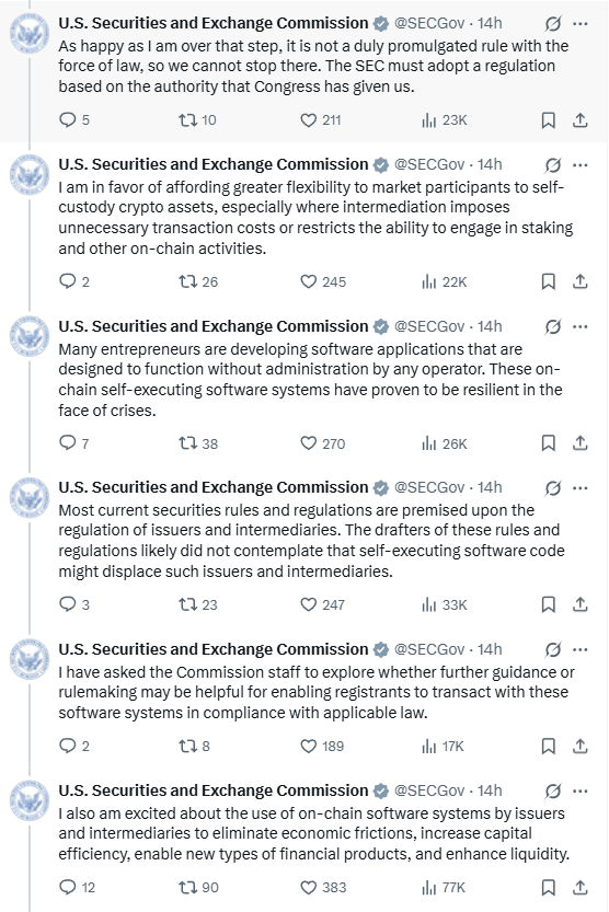 - Pánové, představte si, proč @CZ říká, že to je DeFi den, protože tyto názory SEC jsou opravdu velmi významné pro DeFi.