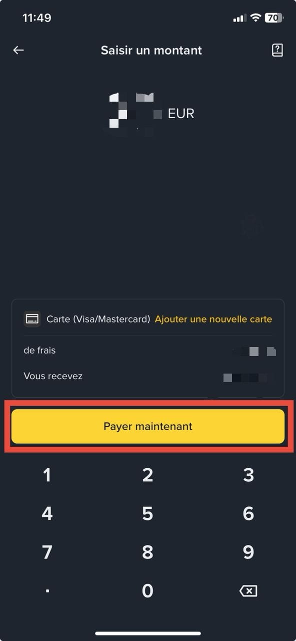 Zadejte částku a poté klikněte na Zaplatit nyní