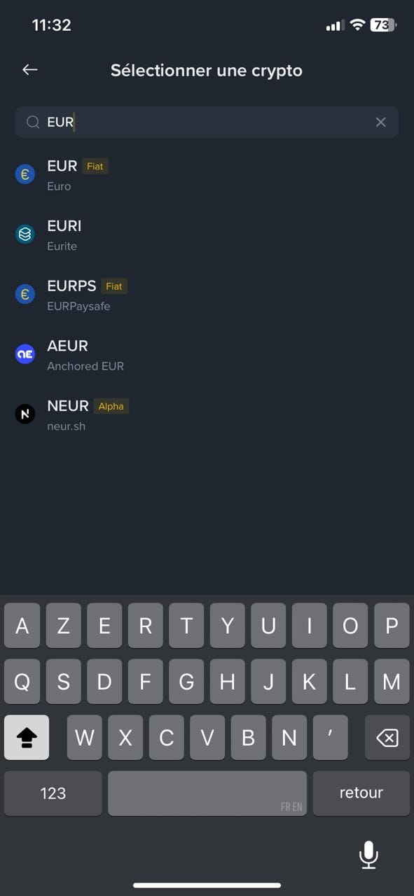 Hledejte a vyberte měnu dle vašeho výběru (např. EUR)