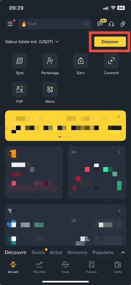 Otevřete svou aplikaci Binance a klikněte na tlačítko Vložit na domovské stránce