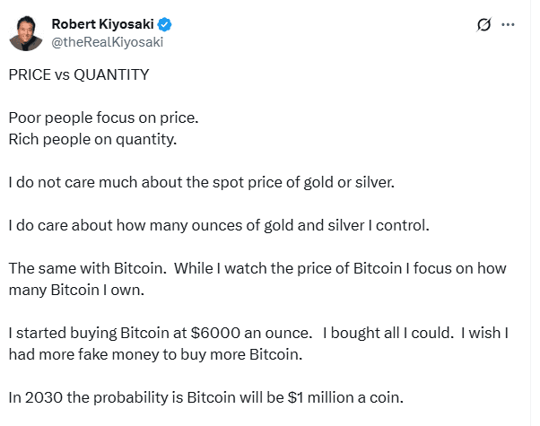 Robert Kiyosaki předpovídá, že BTC dosáhne 1 milionu dolarů do roku 2030