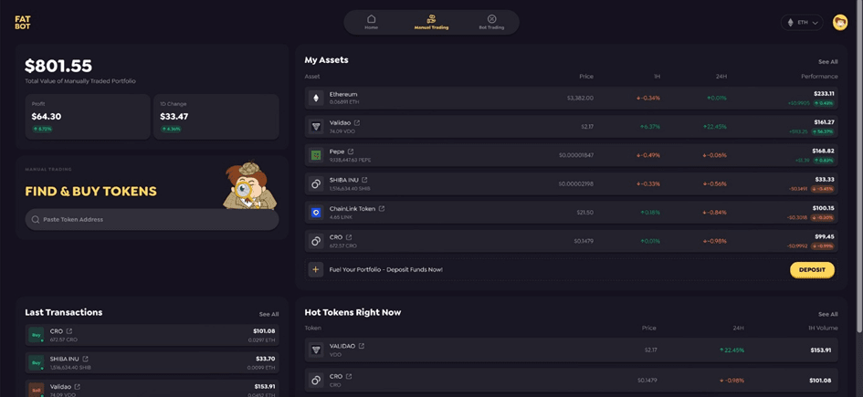 Jak již vidíte z úvodu, FatBot nabízí skutečně impozantní škálu funkcí. A není divu – je to all-in-one obchodní platforma na blockchainu. Pokud chcete operovat v on-chain prostředí, obvykle potřebujete používat více platforem a aplikací pro různé úkoly. Ale díky FatBot je to nyní minulostí.