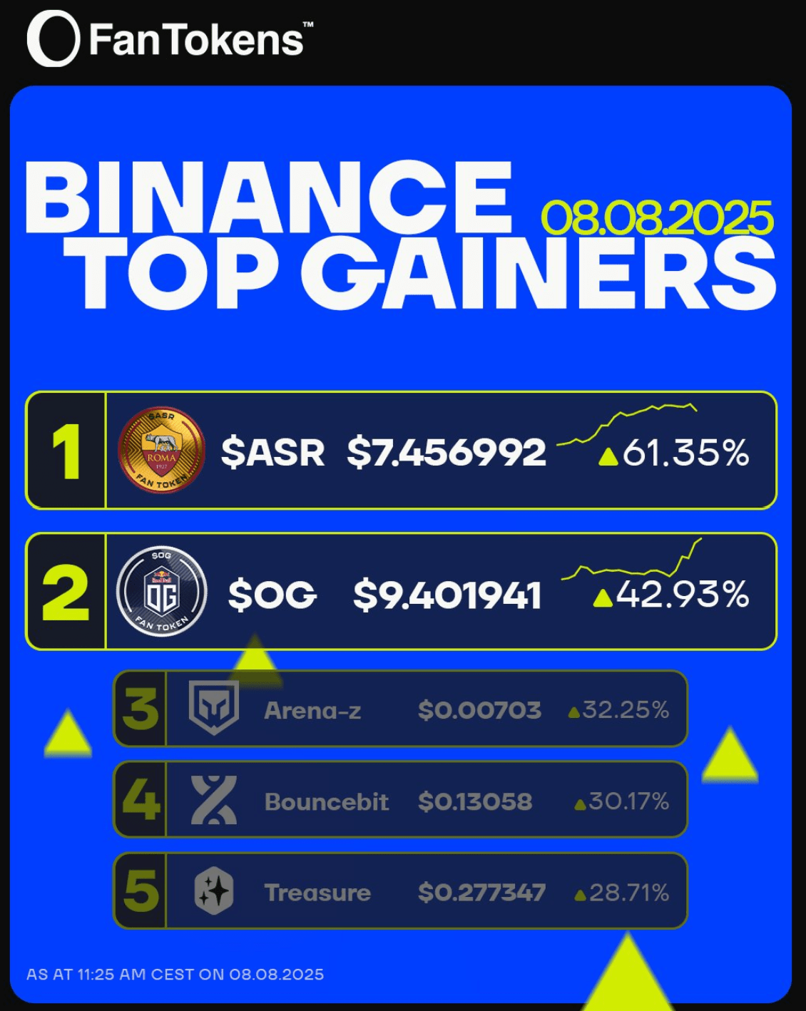 Vzhledem k dnešním pohybům cen jsou OG a ASR některé z nejlépe výkonných fan tokenů roku zatím, a v případě AS Říma ($ASR) sezóna fotbalu ještě ani nezačala!