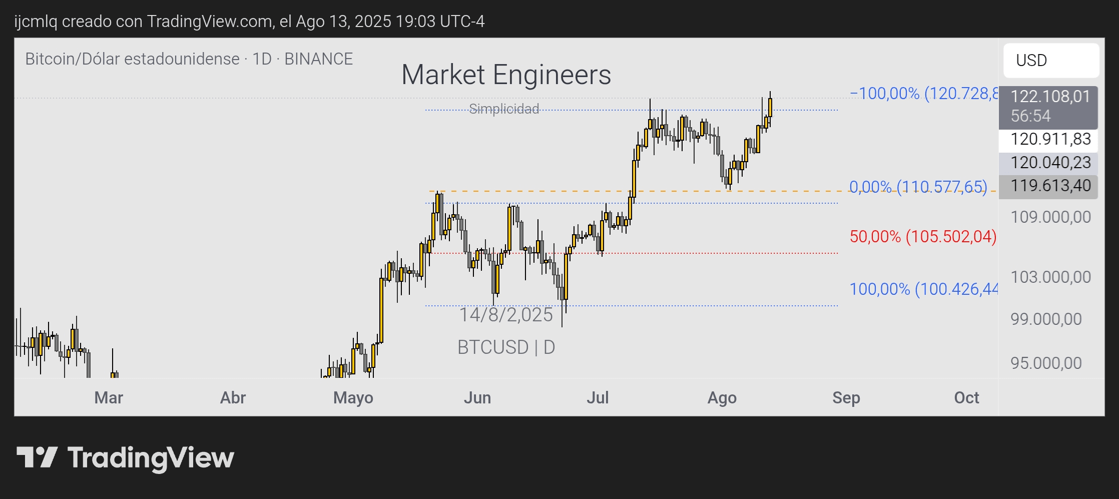 Jak je patrné z předchozího grafu, cena BTC se přiblížila k USD 123.091, 📈 což je její poslední historické maximum, i když momentálně bez úspěchu kvůli okamžitým korekcím, které, jak jsem zmínil, naznačují aktivitu realizace zisků ze strany investorů.