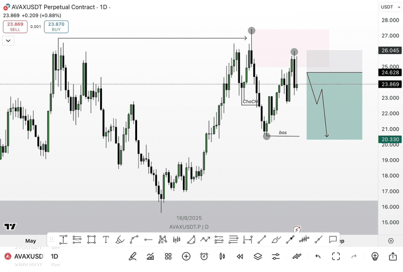 Pokud cena neprolomí nad $24.6, očekávám pokles směrem k zóně $20.