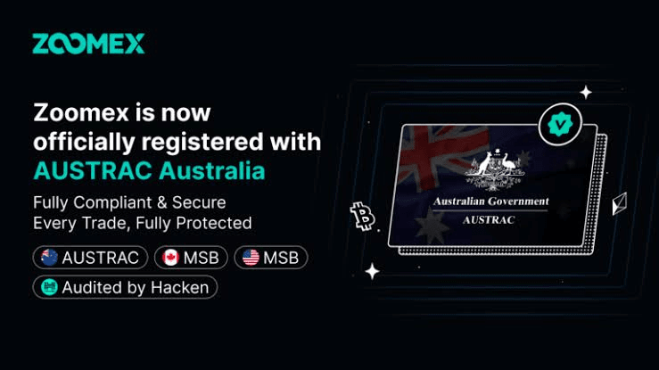 Zoomex, rychle rostoucí burza, se oficiálně zaregistrovala u AUSTRAC (Australské centrum pro zprávy a analýzu transakcí).