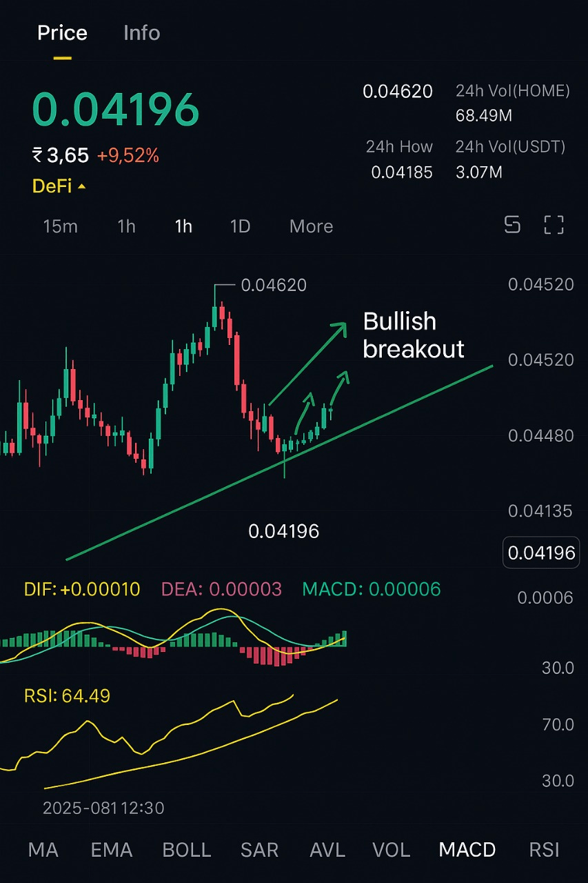 Trh právě zaznamenal ostrý pokles v $HOME , který klesl na $0.041 poté, co se na začátku týdne dotkl výšek blízko $0.049. 📉