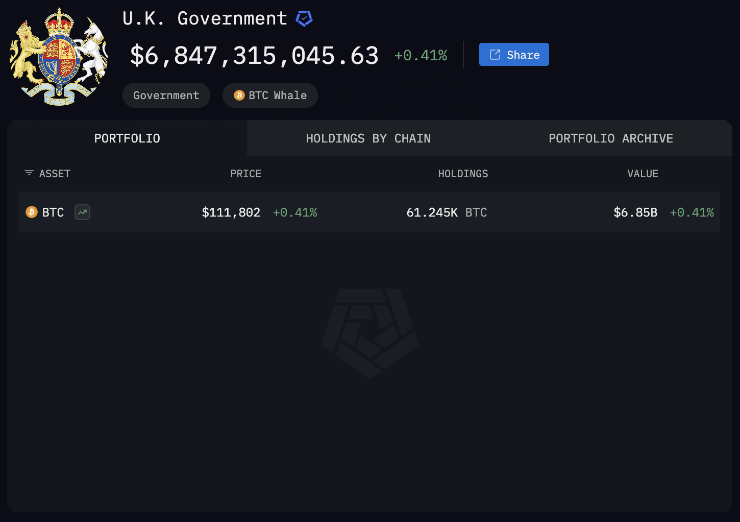 Vládou USA Spojené království → 61 245 BTC z policejních operací.