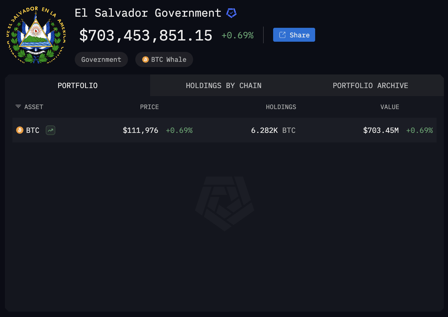 El Salvador → 6 272 BTC zakoupených jako součást jeho strategie legální měny.
