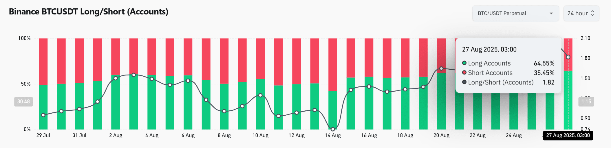 Podle dat z Binance tvoří dlouhé pozice 64,55%, krátké 35,45%, poměr dlouhých a krátkých pozic je 1,82. To znamená, že trh vykazuje výraznou býčí náladu, ale také skrývá rizika ⚠️:
