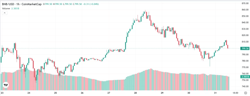 Binance Coin (BNB) vzrostl o 24 % tento měsíc, dosáhl $807,8, zatímco Binance připravuje rychlou 15-minutovou aktualizaci sítě peněženky na zvýšení bezpečnosti a výkonu.