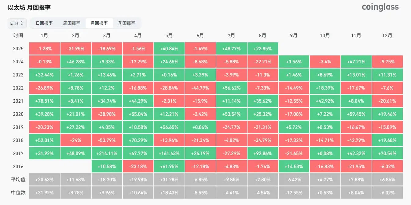 BlockBeats zpráva, 28. srpna, podle informací z trhu HTX, Ethereum dosáhlo od začátku srpna nárůstu 20,6 %, pokud se v následujících 3 obchodních dnech nevrátí k výše uvedenému nárůstu, zaznamená čtvrtý pozitivní srpen v historii.