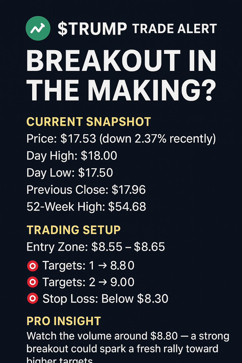 $TRUMP Media & Technology Group Corp (DJT) znovu přitahuje silnou pozornost, protože obchodníci pečlivě sledují jeho pohyby.