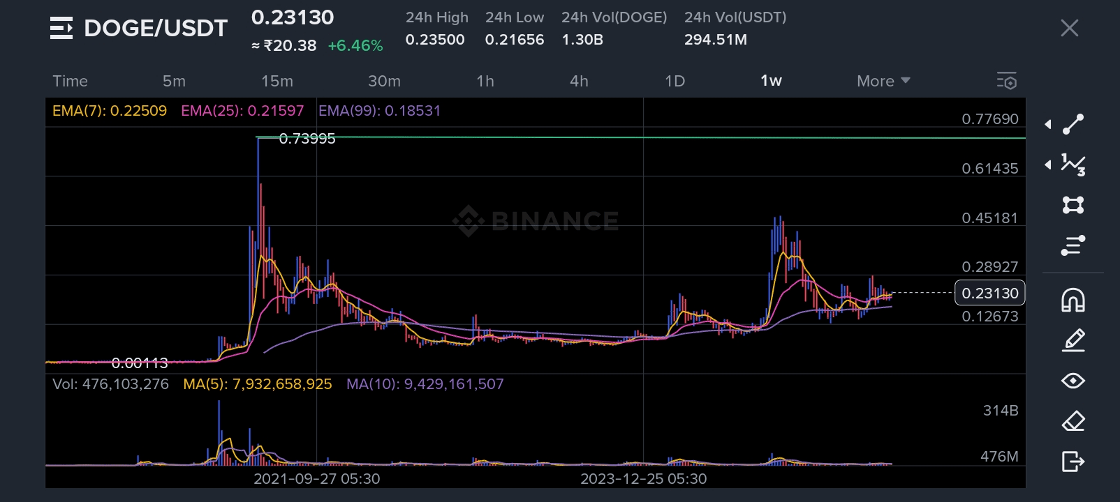 Dogecoin míří k historickému maximu: Může král meme coinů znovu dosáhnout svého vrcholu $0.74?