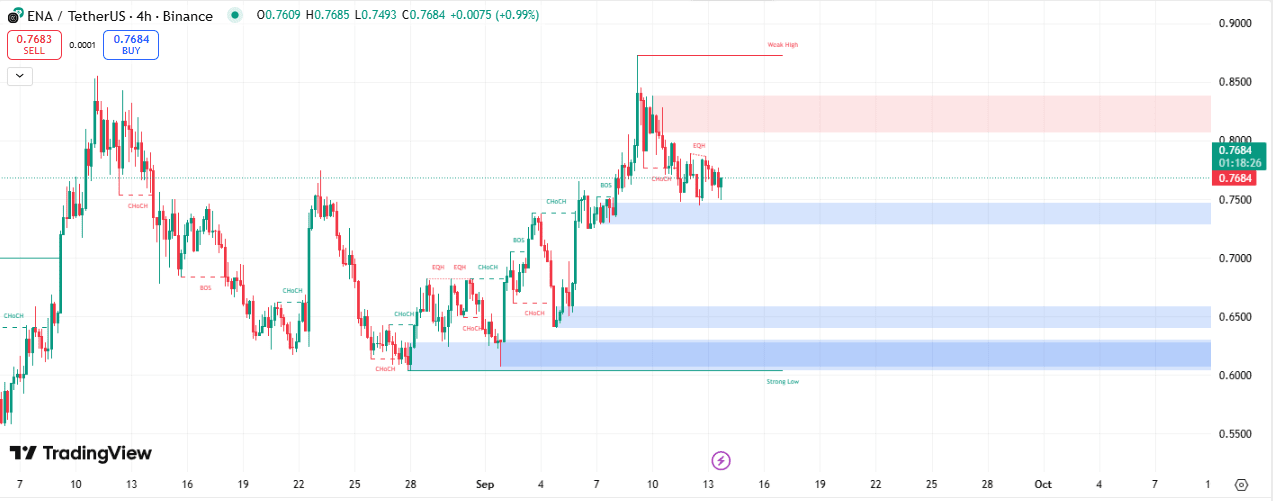 15minutový graf ukazuje jasné odmítnutí ceny na vrcholu rozmezí a rychlé zotavení z poptávkové zóny 0.748. Vstupy budou založeny na potvrzení cenového pohybu nebo uzavření 15minutové svíčky nad klíčovou strukturální úrovní.