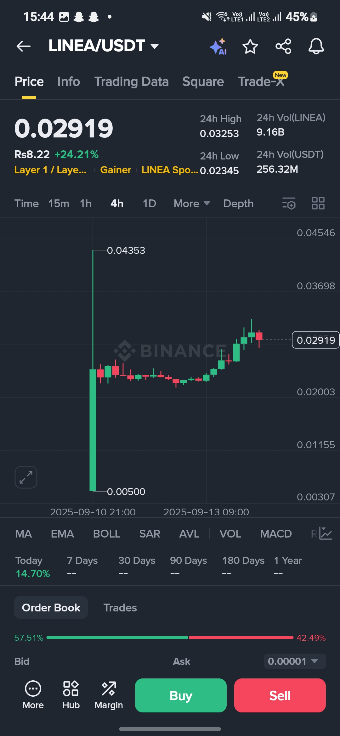 $LINEA vykazuje neuvěřitelnou sílu, s masivním nárůstem ceny a silným nákupním tlakem. Nedávný skok přes 24 % je jasným ukazatelem, že býci mají kontrolu. Tento moment je poháněn několika klíčovými faktory: