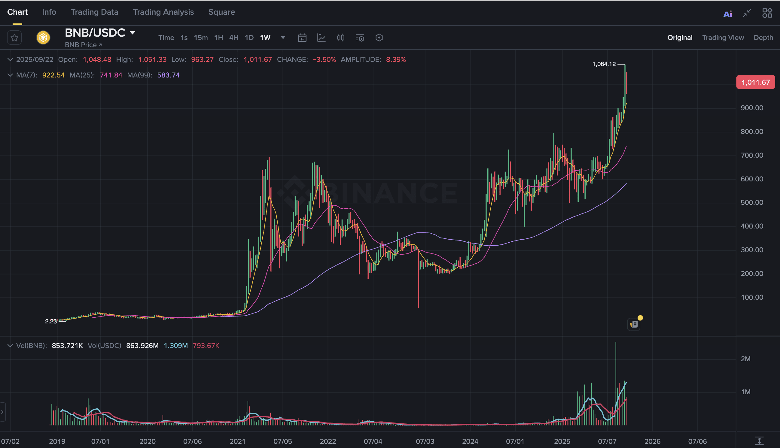 $BNB překonala svůj historický rekord, když dosáhla $1,005.