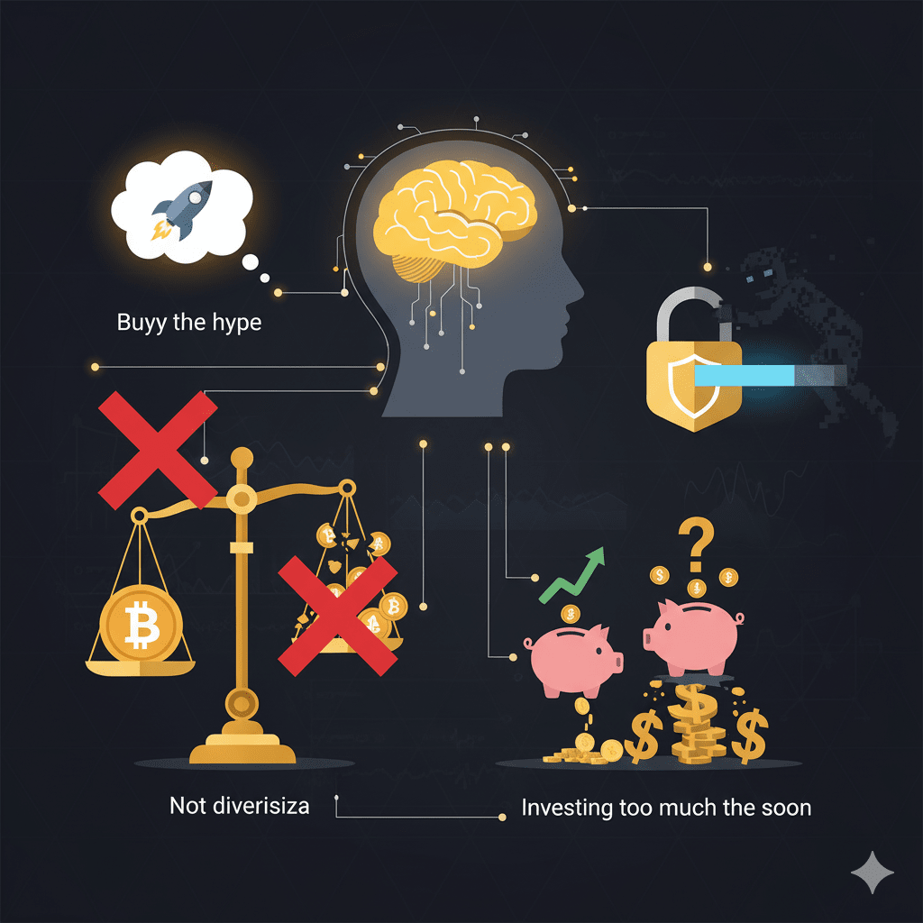 Nediverzifikovat: Investovat celý svůj kapitál do jedné kryptoměny je extrémně riskantní. Rozděl svou investici mezi různé aktiva, abys zmírnil riziko (pamatuj, co jsme říkali o "velkých", "středních" a "spekulativních" altcoinech).