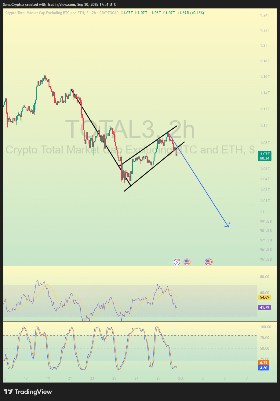 Tento graf ukazuje, že TOTAL3 tvoří medvědí vlajku a nyní se propadá. Pokud bude nadále klesat, většina altcoinů pravděpodobně také klesne. Vzhledem k tomu, že SOL je také altcoin, může poklesnout spolu s trhem.