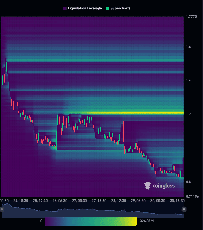 BARD/USDT má hodně peněz, které leží kolem 1,2 $, takže pokud cena začne růst, pravděpodobně tam bude přitahována jako magnet.
