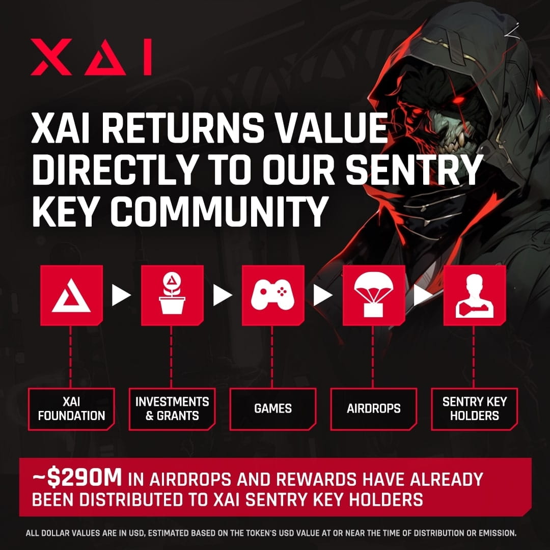 V ekosystému XAI hrají Sentinel nody klíčovou roli. Jsou klíčovými prvky k dosažení decentralizace v ARB L3 řešení. K datu 22. ledna 2024 bylo úspěšně prodáno 33 360 Sentinel nodů, což vedlo k celkovému výnosu 11 048,55 ETH. Tyto uzly provozují 6070 držitelů peněženek, kteří prošli procesem KYC (ověření identity), což výrazně posiluje bezpečnost sítě XAI.