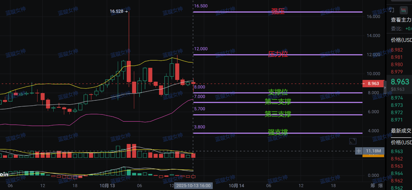 Podpora na 5,94 dolaru: Toto je 24hodinové minimum, pokud to prorazí, půjde to k 4 dolarům, pokud to prorazí předchozí minimum, je konec! Aktuální cena je zaseknutá uprostřed, jako bychom stáli na okraji útesu - vpřed je "jatek" velryb, vzad je "příležitost" k nákupu, ale drobní investoři to nemohou vydržet!