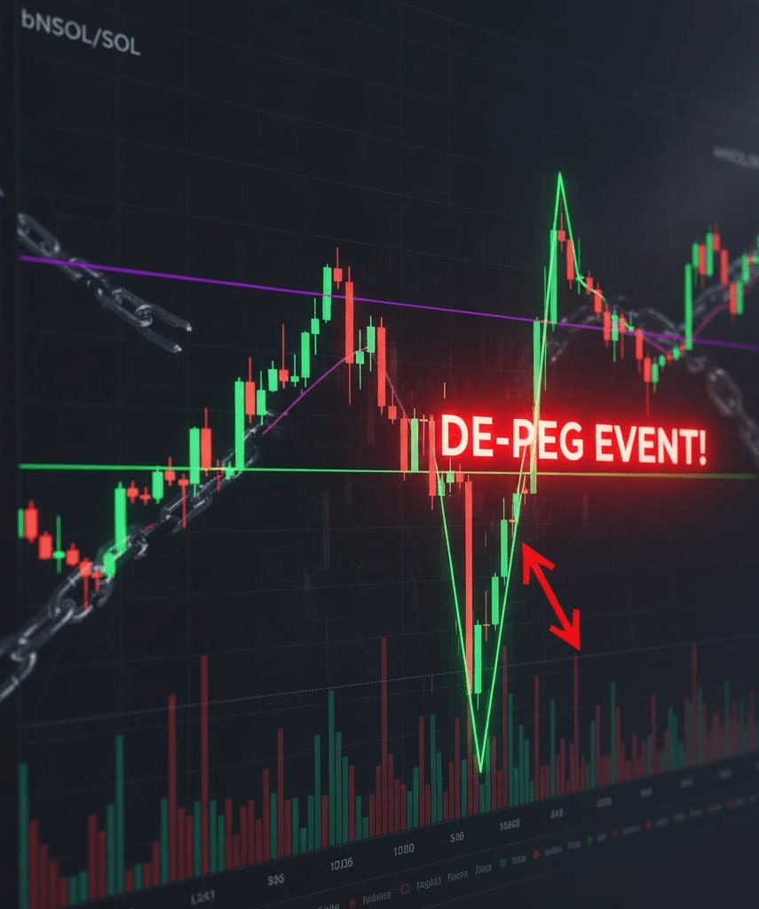 Mnoho investorů předpokládá, že 1 bNSOL bude vždy mít stejnou hodnotu jako 1 $SOL (plus odměny). To je fatální chyba v době tržního stresu. ⚠️