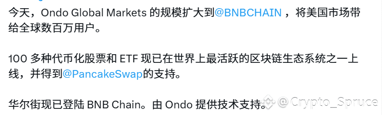 但在 BNB Chain 上,Ondo 的代币化股票可以直接在 PancakeSwap 等 DEX 上交易,几乎零门槛、低延迟、低成本,这意味着它第一次真正具备了“零售级可用性”。